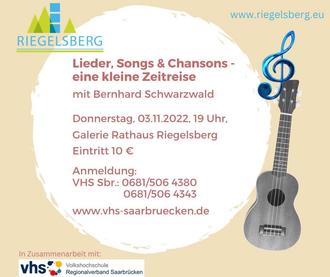 Bernhard Schwarzwald, Gewinner eines Liedermacherwettbewerbs (1992), nimmt Sie mit auf eine kleine Zeitreise von 1960 bis in die heutige Zeit, auf der es neben Bekanntem auch Unbekanntes zu entdecken gibt. Diese Lieder, Songs und Chansons haben die Zeit überdauert, ihre Themen und Inhalten bleiben zeitlos - Lieder von Klaus Hoffmann, Marlene Dietrich, Edith Piaf, Bette Midler, Eric Clapton und den Beatles.