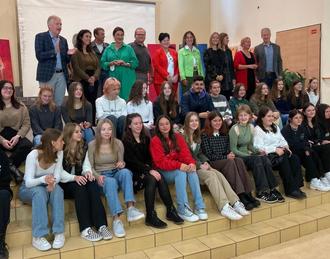 Nach einer Präsentation durch die Schülerinnen und Schüler beider Schulen folgte ein gemeinsamer Rundgang durch das Gebäude. Unsere Besucher bestaunten die Werke der Schülerinnen und Schüler, die in 15 großformatigen Bildern Themen der Nachhaltigkeit und der sozialen Gerechtigkeit über drei Stockwerke hinweg künstlerisch umgesetzt haben. Angeleitet wurden Sie dabei durch die Künstlerin Lioba Amann und die Schulentwicklungsbeauftragte des Landkreises Saarlouis, Frau Natalie Sadik.