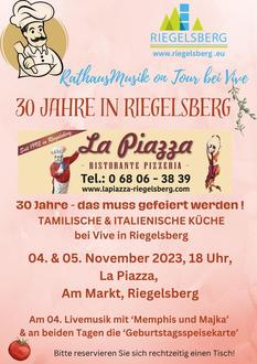 Und nun werden 30 Jahre – La Piazza – in Riegelsberg gefeiert.