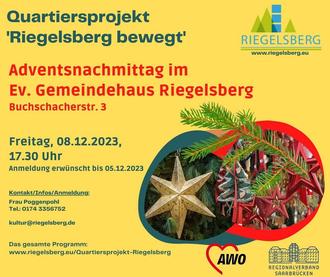 Das Quartiersprojekt „Netzwerk Riegelsberg bewegt“ mit der Bücherei St. Matthias Riegelsberg und in Verbindung mit der Evangelischen Kirchengemeinde Oberes Köllertal lädt am 08. Dezember 2023 zu einem besonderen Adventsnachmittag ein.