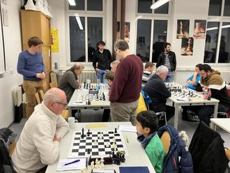 Bereits früh zeichnete sich ab, dass es ein enger Kampf werden würde. Marlon stand früh auf Gewinn, dafür stand Ronny nach einem Fehler in der Eröffnungsphase früh auf Verlust. Hans Jürgen stand etwas besser, Fritz kam gegen seinen 77 Jahre jüngeren Gegner mit einem Bauern weniger aus der Eröffnung. An allen anderen Brettern stand es nach zwei Stunden Spielzeit etwa ausgeglichen.