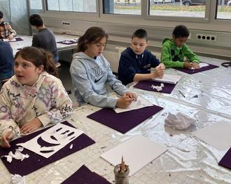 Lernen an außerschulischen Lernorten - die Schüler*innen der Klasse 5a zeigte sich begeistert, als es soweit war. Gemeinsam mit ihren Lehrerinnen Frau Karmann und Frau Stein-Cenkel sowie zwei Schulassistentinnen machten sie sich auf den Weg zur Modernen Galerie in Saarbrücken. Auf dem Programm stand die viel beachtete Ausstellung „Oskar Holweck - Form und Textur“ anlässlich des 100. Geburtstages des Künstlers. Neugierig und interessiert konnten sie während einer Führung erleben, was Oskar Holweck mit dem alltäglichen Material Papier geschaffen hat: Grafiken, Reliefs und Objekte, die in Erstaunen setzen. Und wie Holweck experimentierten sie anschließend voller Schaffensfreude im Atelier mit diesem Material. Eifrig knickten, knüllten und perforierten sie, um dem Papier immer neue Formen zu entlocken. Ausgestellt auf großen Tischen zeigten sich alle begeistert, was sie geschaffen hatten. Und schnell war der Plan gereift, am Tag der offenen Tür einige der Arbeiten zu präsentieren. Lernen an außerschulischen Lernorten - es macht nicht nur Spaß, sondern erweitert den Blick und stärkt das Selbstbewusstsein.