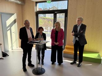 (v.l.n.r.:) Bürgermeister Klaus Häusle, Regionalverbandsbeigeordnete Anita Morschette-Sarg, Ministerin für Bildung und Kultur des Saarlandes, Christine Streichert-Clivot sowie Architekt Willi Latz