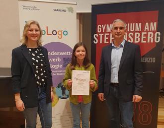 Die Schülerin Ida Hallebach aus Klassenstufe 7 des Albert-Einstein-Gymnasiums qualifizierte sich nach erfolgreicher erster Runde für die Landesrunde des Landeswettbewerbs BioLogo, welche am 16.10.23 am Albert-Schweitzer-Gymnasium in Dillingen stattfand. Hier musste Ida u. a. Fragen zu den Wirbeltierklassen, zur Botanik und zum Stoffwechsel beantworten – Themen, die bereits ein Jahr zuvor im Unterricht besprochen wurden. Unter allen Teilnehmern des Anforderungsniveaus 2 (Klassenstufe 7) belegte Ida den 9. Platz. Dafür wurde sie im Rahmen einer Feierstunde am 30.11.23 am Gymnasium am Stefansberg in Merzig von Frau Nicole Cayrol vom Ministerium für Bildung und Kultur ausgezeichnet. Darüber freuten sich auch die Biologielehrerin Frau Lux sowie der stellvertretende Schulleiter Herr Dr. Schmitt, die ebenfalls an der Feierstunde teilnahmen. Ida konnte sich zusätzlich über eine Familienkarte für den Saarbrücker Zoo freuen, welche unter allen Teilnehmerinnen und Teilnehmern des Wettbewerbs, die in der Feierstunde anwesend waren, verlost wurde. Die Schulgemeinschaft des Albert-Einstein-Gymnasiums gratuliert Ida herzlich zu ihrem Erfolg.