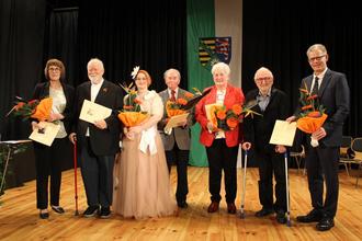 Weiterhin erhielten die Ehrenmedaille der Gemeinde Breitungen Cornelia Reum, Helmut Bednarek, Wilhelm Geretzky, Barbara Ullrich und Dietrich Roese.(v.l.) In Abwesenheit erhielt Peter Heuer eine Ehrung.