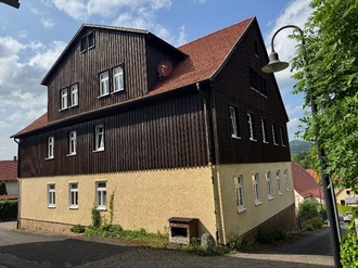 Bei dem Objekt handelt es sich um die ehemalige Dorfschule, die in den 1970er Jahren zum Mehrfamilienwohnhaus umgebaut wurde. Die Grundstücksbebauung besteht aus einem teilunterkellerten, zweigeschossigen Mehrfamilienhaus mit ausgebauten Dachgeschoss. Das Wohnhaus wurde in Fachwerksbauweise Mitte des 19. Jahrhunderts errichtet und besitzt 5 Wohneinheiten, wobei sich im EG und OG jeweils zwei Wohnungen und im DG eine weitere Wohnung befinden.