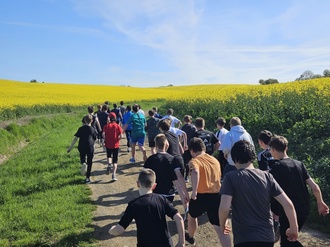 Vor dem Lauf absolvierten alle einen Fußmarsch von der Schule bis zur Unterführung oberhalb des Schlosses Richtung Lehmgrube - die perfekte Erwärmung für die anstehenden Strecken.