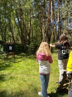 Mit viel Spiel und Spaß lernten unsere Schüler und Schülerinnen allerlei über das Leben der Germanen. Angefangen bei der Waffenkunst, über das Leben in der Dorfgemeinschaft und die Essenskultur, bis hin zur Textilherstellung und Materialgewinnung. Natürlich durften auch das Bogenschießen und das Kräftemessen beim Tauziehen nicht fehlen.