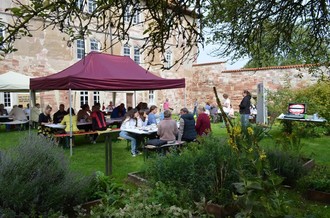 Das erste Gartenfrühstück fand am 03.09.2023 unter dem Thema „Bewegtes Dorfleben in Breitungen“ im Kräutergarten des Aktivmuseums statt. Für die Dorfbewohner ging es am frühen Morgen bereits bewegt zu. Einige kamen zu Fuß, andere mit dem Rad.