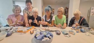 Seit Wochen bemalen die Frauen der Kreativgruppe „Herzenssache“ Steine in allen Formen und Größen mit Engeln, Herzen oder anderen Mutmach-Symbolen. Die gestalteten Steine wurden in der Umgebung ausgelegt, damit Spaziergänger sie mitnehmen oder an anderer Stelle wieder auslegen können. Auf diese Weise sollen sie nicht nur Freude verbreiten, sondern auch zum Innehalten anregen.