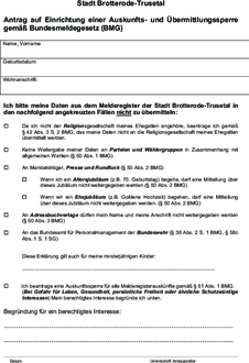 Die Widersprüche gegen Datenübermittlungen bzw. der Antrag auf Einrichtung einer Auskunftssperre, sind ohne Angabe von Gründen (außer bei der Einrichtung einer Auskunftssperre) schriftlich bei der