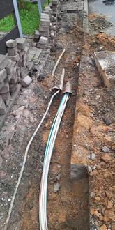 Im Rahmen des Flächenausbaus ist leider eine andere Verfahrensweise zugange. Hier geht es offenbar erst einmal um die Verlegung von Leerrohr. Die Hausanschlüsse werden am bzw. im Grundstück abgelegt. Nur vereinzelnd erfolgt bereits eine Einführung in die eigenen Vier-Wände. Die Straßengräben werden provisorisch mit Splitt und Schotter geschlossen, vereinzelnd erfolgte eine Pflasterlegung bei Straßenquerungen. Aufgrund von Witterung bzw. aber auch durch den Straßenverkehr werden die Gräben ausgefahren. Der Schotter liegt zum Ärgernis der Bevölkerung auf der Straße entsprechend verstreut. Nach Rückfragen bei der ausführenden Firma EllinLine Gmbh heißt es dazu, dass durch die Dichte der Hausanschlüsse eine andere Technologie gefahren werden muss. Beim Einblasen der Faser liegt die Erfolgsquote bei etwas über 50%, dass es keine Probleme gibt und erneut geöffnet werden muss. Da sind die Aufwendungen und natürlich auch die Kosten bei einer asphaltierten Decke wesentlich höher. Die Frage, warum beim Flächenausbau mit einem kleineren Leerrohrquerschnitt arbeitet, konnte nicht beantwortet werden.