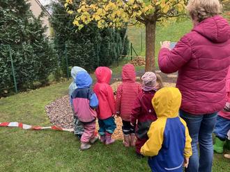 Und auch beim nächsten Projekt ging es um eine Projektarbeit, die unsere Zehntklässler in ihrem jeweiligen Abschlussjahr anfertigen dürfen. Zu einem selbstgewählten Thema muss neben einem theoretischen Teil ähnlich einer schriftlichen Hausarbeit ein für die Schule und die Gegend nachhaltiges Produkt entstehen. Entweder eben ein Projekt durchführen oder wie Eric, Leni, Johan und Luis, die im Rahmen ihrer Projektarbeit den alten Barfußpfad am evangelischen Kindergarten Trusetal neu gestalteten. Toll fanden ihn auch die Kindergartenkinder der Hasengruppe, die ihn Mitte November einweihen durften.