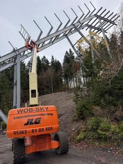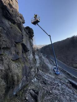 In etwa zur gleichen Zeit wurde mit einer gewaltigen Hebebühne die spätere Felssicherung am Wasserfall vorbereitet, Arbeiten, die ausschließlich in den Sommermonaten, wenn es frostfrei ist, erfolgen können.