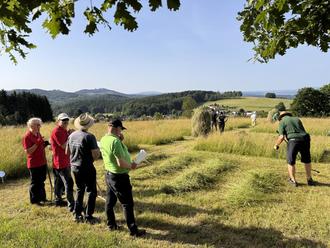 Noch gut in Erinnerung ist mir der Mahd-Wettbewerb zum „Lüdmicher Wiesenfest“. Die Jury achtete auf einen möglichst sauberen Schnitt der Teilnehmer. Die waren aufgefordert, eine Parzelle von 15 Quadratmetern zu mähen. Ihre eigenen Sensen hatten sie mitgebracht. Das Know-how ebenfalls. Und das Lüdmicher Wiesenfest ist immer eine gute Möglichkeit, sich auszutauschen und historische Arbeitsweisen auf dem Feld wieder aufleben zu lassen. Das Wissen wird so praktischerweise auch gleich an die junge Generation weitergegeben. Wer weiß als Stadtkind schon, was ein Heureuter ist? Zum Wiesenfest in Lüdmich gehört traditionell auch ein Natur-Parcours. Auf dem Festplatz gab es 20 Stände rund um die Natur. Auch hier konnte mitgemacht werden.