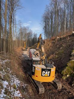 Wenn ich Rückschau auf das Jahr 2025 halte, dann muss ich natürlich zuerst den Ausbau des Mommelstein-Radwaderweges nennen. Es war/ ist ein Großprojekt, das uns das gesamte Jahr über in Atem hielt. Die Finanzierung wurde frühzeitig geklärt. Thüringens damaliger Wirtschaftsstaatssekretär Carsten Feller (SPD) hatte im Januar 2022 den Förderscheck über fast zwei Millionen Euro aus GfAW-Mitteln übergeben. Zehn Prozent der Kosten trägt die Stadt. Bereits im Januar rückten bei Schnee und Frost die Bagger an. Die Strecke ab dem ehemaligen Bahnhof Auwallenburg bis nach Brotterode wurde befahrbar gemacht. Was sich so leicht anhörte, hatte es in sich. Immerhin handelt es sich um fast sechs Kilometer Fahrstrecke. Zwei Brücken mussten instand gesetzt, Böschungen und Einschnitte gesichert, tausende Schwellen ausgebaut, gebrochen und als Unterbau wieder eingebaut werden.