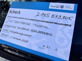 Der Fördermittelscheck zur Sanierung der Technik des Inselbergbades sorgte gleich zu Oktoberbeginn für große Freude. Ihm vorausgegangen war ein langer, gewissenhaft durchgeführter Planungsprozess, der das Bad für die nächsten 15 bis 20 Jahre im Bestand sichern und zugleich dafür sorgen wird, dass sich unsere Stadt das Bad durch geringere Betriebskosten weiter leisten kann. Staatssekretär Tobias Knoblich kam mit über 2,1 Millionen Euro Fördermittel nach Brotterode-Trusetal. Brotterode-Trusetal wird damit künftig ein weitgehend energieautarkes Hallenbad betreiben, das für das Schulschwimmen, den Schwimmsport, für Gäste, für Rehakurse und überhaupt für unsere Lebensqualität wichtig ist. Schon jetzt wird über das Bad die benachbarte Sporthalle mitbeheizt. Daran wird sich auch in Zukunft nichts ändern, nur, dass die Sporthalle mit ihrer gesamten Haustechnik und Ausstattung im kommenden Jahr ebenfalls in die Kur kommen wird. Ein großer Teil der Fördermillionen fließt neben der neuen Hackschnitzelheizung in neue Lüftungsanlagen, neue Pumpen, Filteranlagen sowie Steuer- und Regelungstechnik. Zudem wird auf einer Freifläche eine Photovoltaikanlage mit einer Nennleistung von 230 Kilowatt errichtet, die im Jahr eine Energiemenge von einigen Hunderttausend Kilowattstunden liefern wird.