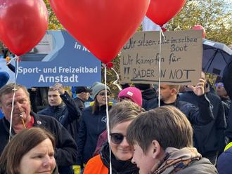 Ende Oktober haben hunderte Menschen aus ganz Thüringen vor dem Erfurter Landtag auf die schwierige Lage ihrer Hallenbäder aufmerksam gemacht. Darunter war auch unsere eigene Demonstrantengruppe mit Kommunalpolitikern, Beschäftigten und Stammgästen unseres Inselbergbades aus Brotterode-Trusetal. Unsere klare Forderung lautete: „Wir wollen unsere Hallenbäder erhalten. Thüringen darf kein Land der Nichtschwimmer werden.“ Jahrzehnte haben Kommunen mit Hallenbad klaglos zentrale Aufgaben, wie das Schulschwimmen oder die Ausbildung von Rettungsschwimmern für eine ganze Region übernommen und sehen sich nun einer Kostenspirale gegenüber, die allein nicht mehr zu stemmen ist. Deshalb haben sich alle Kommunen mit Bädern vor zwei Jahren zu einem Arbeitskreis „Bäder in Not“ zusammengeschlossen und die Nöte nach Erfurt transportiert. Der nun angestoßene Prozess eines Umdenkens stimmt zuversichtlich.