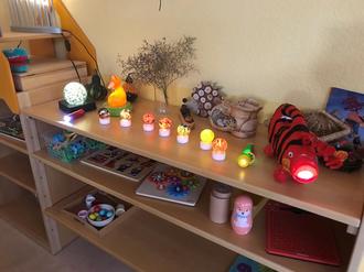 Die Kinder gestalteten im Vorfeld in ihren Gruppen schöne Lichter oder brachten Leuchtmittel zu diesem besonderen Tag mit. Die Glühwürmchen-Gruppe bastelte Tage zuvor kleine Lichtquellen aus bemalten Tischtennisbällen und LED-Teelichtern.