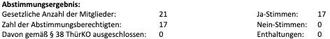 Herr Jan Kämmer war abwesend und nahm nicht an der Abstimmung zu diesem Tagesordnungspunkt teil.