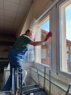 In der Feuerwehr wurde fleißig geputzt und tapeziert, während am Dorfgemeinschaftshaus die Fenster gesäubert wurden sowie die Terrasse.