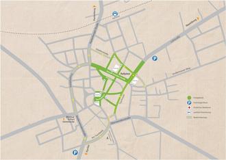 Strecke: Großemsener Weg, Roßplatz (Lidl-Parkplatz), Gabelsberger Straße, Gartenstraße, Goethestraße, Rastenberger Straße, Hospitalberg, Niederwendenstraße, Am Teichberg, Kirchstraße, Topfmarkt, Roßplatz, Großemsener Weg