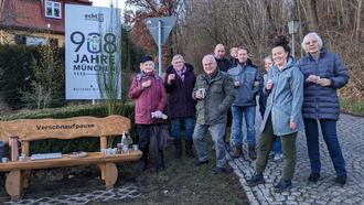 Münchens neue Bank lädt zur „Verschnaufpause“ ein. Mit den Fördergeldern der Stadt Bad Berka für die Ortsteile von 2024 konnte der Ortsteilrat für die Münchner/innen, für Wandernde und Kur-Gäste einen kleinen, feinen neuen Sitzplatz schaffen. Die solide und markant geformte Bank der Naturburschen aus Tannroda lädt ab sofort zum Verweilen an der Ecke Tonndorferstraße/Adolf-Tegtmeier-Allee ein, bevor man den Emskopf erklimmt. Den Stieg über den „Lungenpfeifer“ nahmen früher auch die Patienten hoch zur Sophienheilstätte, ein also mehr als passender Name. Bereits wurden die ersten Wanderer gesichtet, die der Einladung aktiv folgten und das Vesperbrot in der Sonne auspackten. Kurz vor dem Jahreswechsel weihten die Münchner die Bank offiziell ein. Ortsteilbürgermeisterin Sabrina Rossow dankte den Mitwirkenden. „Es gibt wenig, was süßer schmeckt als ein gutes Stück Schokolade, auf jeden Fall ist das aber das ehrenamtliche Engagement der Bürgerinnen und Bürger für ihren Ortsteil, ob beim 1. Münchner Herbstputz oder eben hier.“, so Ortsteilbürgermeisterin Sabrina Rosow. Kurzerhand wurde der Bank unter der Federführung von Heinz Hemmeke vor Weihnachten noch ein ebenes Fundament mit Rasengittersteinen verpasst und die Bank entsprechend verankert und gesichert. Der etwas marode Pfeiler der Wandewegskreuzung wurde getauscht und wieder gerade gesetzt. Wir können immer nur kleine Schritte machen, aber nach dem Projekt „Münchsteig“, mit den Informationstafeln zur Klinikgeschichte, die die Besucher durch den Ort hoch zur Sophienheilstätte begleiten, freuen wir uns über den neuen kleinen Treffpunkt auf der Ecke. 2025 arbeiten wir weiter daran für unseren kleinen Ortsteil, mit dann bald Kurstatus auch einem gemeinsamen Dorfplatz näher zu kommen.