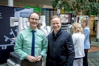 Testeten den da Vinci: Bad Berkas Bürgermeister Michael Jahn (links) und Zentralklinik-Geschäftsführer Robert Koch. Foto: Delf Zeh