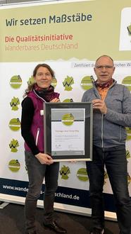 Die weltweit größte Messe für Tourismus und Freizeit, die CMT in Stuttgart, bot am Wochenende den Rahmen für die Auszeichnung herausragender Wanderwege mit dem Zertifikat „Qualitätsweg Wanderbares Deutschland“ bzw. als „Qualitätsregion Wanderbares Deutschland“.