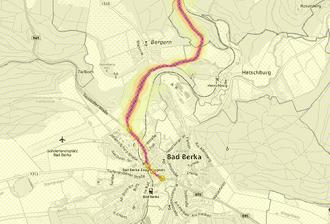 Die Stadt Bad Berka möchte darauf hinweisen, dass nur Straßen erfasst wurden, deren Belegung höher als 3.000.000 Mio. Fahrzeuge/ Jahr ist. Deshalb endet die Kartierung an der Kreuzung Weimar, Tannroda, Blankenhain.