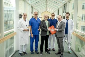 Delf Zeh - v. l. n. r. Dr. Ulrich Paul Hinkel, PD Dr. Christian Hohenstein, Dr. Mark Williams, PD Dr. Birger Mensel, Mario Schulter und Dr. Mark-Christopher Spoerl.