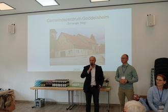 Goddelsheim ist der größte Stadtteil der Stadt und Sitz der Stadtverwaltung. Hier wurde uns vom Bürgermeister Henning Scheele, den Stadträten, der Feuerwehr, dem Landfrauenverein Goddelsheim und dem Verein zur Erhaltung alten Kulturguts e.V. ein sehr herzlicher Empfang mit Kaffee, Kuchen und Sekt bereitet. Sehr beeindruckt hat uns die Sanierung des Bürgerhauses und das tolle Museum, das vom Verein aufgebaut wurde. Zur Erinnerung an diese Bürgerbegegnung wurde eine Rotbuche gepflanzt. Im nächsten Frühjahr freuen wir uns auf den Gegenbesuch in Bad Berka.