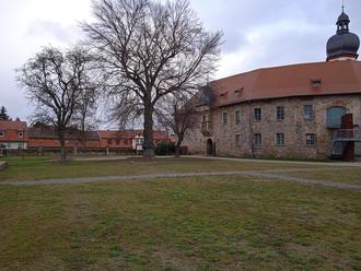 | Der zentrale Bereich des Marktplatzes sowie des Schlossvorplatzes ist ein Raum mit deutlichen Entwicklungsreserven bei der Gestaltung und Nutzung. Die Verkehrs- und Platzflächen weisen deutliche altersbedingte bauliche Mängel auf und die vorhandenen Pflanzbereiche besitzen Gestaltungsreserven. Das ehemalige Rathaus ist weitgehend ungenutzt. Bis auf die Polizeistation ist in dem ortsbildprägenden Gebäude keine weitere Nutzung untergebracht. Der Marktplatz fungiert derzeit einmal wöchentlich als Wochenmarkt und wird ansonsten als Parkplatz genutzt. Es herrscht eine grundlegende mangelnde Barrierefreiheit im Gebiet. Um diese gestalterischen und baulichen Mängeln entgegenzuwirken wird im Jahr 2023 ein Architektenwettbewerb zur Neugestaltung der Platzbereiche als auch für die Erstellung einer Nutzungskonzeption des leerstehenden Rathauses durchgeführt. |