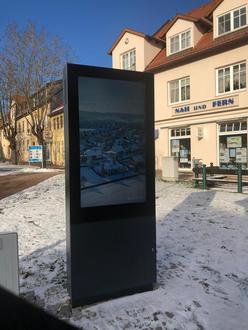 Die Umsetzung und Inbetriebnahme der digitalen Schaukästen konnte im 1. Quartal 2023 erfolgreich umgesetzt werden und an allen 3 Standorten wurden Inhalte eingespielt und sind von allen Bürgerinnen und Bürgern einsehbar. Die Stelen wurden jeweils durch die Mitarbeiter des Bauhofes in Blankenhain eingebaut.