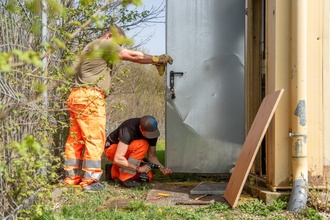 Nicht zu den Öffnungszeiten indes suchte ein bisher unbekannter Mann den Recyclinghof am Nachmittag des Ostersonntag gegen 16.00 Uhr auf. Da das Gelände umfangreich mit Kameras gesichert ist, konnte nachvollzogen werden, dass er sich nach dem Betreten des Hofes von den Überwachungskameras beobachtet fühlte und schnell versuchte in einem Gebüsch Deckung zu suchen. Er ging daraufhin zur Fahrzeughalle und brach hier eine Tür mit roher Gewalt auf. Nicht einmal von der schrillenden Alarmanlage ließ sich der junge Mann abhalten. Als er in der Halle nichts Verwertbares, dafür aber eine weitere Kamera entdeckte verließ er das Objekt wieder.