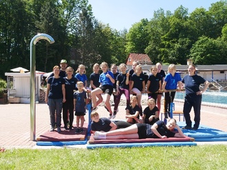 Unterstützt wurde die Veranstaltung von Grün-Weiß Blankenhain und dem Kickboxverein. Der TSV trug ebenfalls zur gelungenen Eröffnung bei, indem an eigens ins Waldbad transportierten Sport-und Turngeräten eine beeindruckende Leistung zeigte. Die Kindertanzgruppe begeisterte die Zuschauer mit ihren Tänzen und nahm sie bildlich mit ins Wasser.