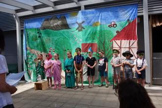 Und dann das Sommerfest, welches am Samstag, den 21.06. stattfand. Bei bestem Wetter war unser Garten pünktlich um 14:30 Uhr bis auf den letzten Sitzplatz besetzt. Das Programm der Kinder begeisterte einmal mehr wieder alle Anwesenden. Mit viel Freude waren unsere Kinder dabei und haben eine bunte Vielfalt an Liedern und Tänzen dargeboten. Im Anschluss hat die Laienspielgruppe der Eltern das Märchen " Schneewittchen und die sieben Zwerge" aufgeführt. Die Kostüme und Dekoration waren wieder liebevoll vorbereitet worden und die schauspielerischen Leistungen wurden mit großem Applaus bedacht. Danach wartete ein buntes Programm auf die Kinder. Basteln, Spielen, Leckeres Essen - einfach perfekt für alle!