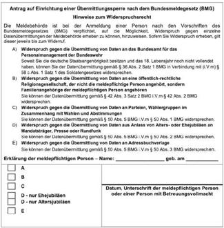 Hinweis: Alters- und Ehejubiläen von Personen, die eine sog. „Auskunftssperre“ im Melderegister haben eintragen lassen, werden auch weiterhin nicht veröffentlicht. Ein nochmaliger Widerspruch gegen die Veröffentlichung der Jubiläen ist nicht notwendig.