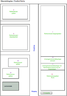 Die Gemeinde Buhla ruft gemäß § 12 Abs. 3 der Friedhofssatzung zur Teilräumung von Grabstätten auf den Friedhöfen in Buhla und Ascherode (siehe Übersichtspläne) auf, für welche das Nutzungsrecht von 30 Jahren abgelaufen ist.