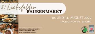 Die Vorbereitungen für den 27. Eichsfelder Bauernmarkt laufen auf Hochtouren. Am 30.08. und 31.08.2025 findet dieser wieder auf dem Gelände des alten Gutes Beinrode statt - wie gewohnt mit regionalen Köstlichkeiten, echtem Handwerk und tollem Programm für Groß und Klein.