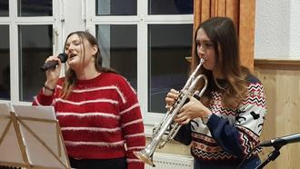 Vanessa Windolph begeisterte das Publikum mit festlichen Liedern, begleitet von ihrer Schwester Isabell Dettenbach auf der Trompete. Sie sang unter anderem „Have Yourself a Merry Little Christmas“ und „Maria durch ein Dornwald ging“. Julius Berend rundete das musikalische Programm ab, indem er „Jesu, meine Freude“ auf dem Keyboard spielte.