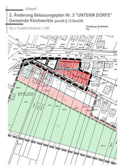 Im rechtskräftigen Bebauungsplan Nr. 2 “Unterm Dorfe“ sind weitere Änderungen im dargestellten Geltungsbereich erforderlich. Die Baufenster für Wohnbauland der Flurstücke 924/380, 925/380 & 380/2 lassen keine Hauptbebauung zu und der Bestand an Nebenanlagen soll erhalten bzw. umgebaut werden. Das Flurstück 379/1 ist eine öffentliche Grünfläche und kein Wohnbauland. Die planungsrechtliche und textliche Festsetzung sollen sich zeitgemäß am Bestand orientieren.
