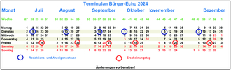 Bitte beachten Sie die neuen Erscheinungs- und Redaktionsschlusstermine im Oktober und November 2024.