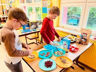 Die vierten Klassen haben ebenfalls interessante und ereignisreiche Tage hinter sich: Sie gestalteten Sternbilder, arbeiteten an verschiedenen Stationen zum Thema Weltall, stellten Lapbooks zu Themen wie Asteroiden, Meteoriten sowie der Milchstraße her und hielten spannende Vorträge zu den einzelnen Planeten unseres Sonnensystems. Besonders kreativ war die Erschließung der Mondphasen mit Oreo-Keksen, die nachgebaut wurden, um die Phasen anschaulich zu erklären. Außerdem suchten die Kinder nach Mondsteinen, was für große Begeisterung sorgte, und lernten die Zusammenhänge zwischen Sonne, Erde und Mond sehr anschaulich anhand eines Modells.