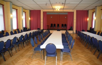 - großer Saal mit Bühne und bis zu 150 Sitzplätzen