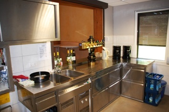 - voll ausgestattete Küche mit Theke, Zapfanlage, Kühlung, Geschirrspüler und Geschirr/Besteck für 150 Personen
