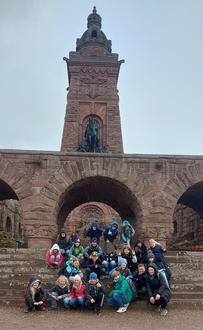 Vom 15.04. bis 17.04.2024 erkundeten wir den Kyffhäuser. Unsere Klassenfahrt verbrachten wir bei kaltem und windigem Wetter im KieZ-Park Feuerkuppe. Nachdem wir am ersten Tag unsere Zimmer bezogen hatten, ging es gleich zum Escape Mountain. Im Team lösten wir spannende Rätsel und gelangten am Ende alle zu einer Schatztruhe. Anschließend mussten wir Feuerholz sammeln, denn am Lagerfeuer gab es dann Abendbrot.