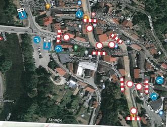 Sperrung der B88 (Burgstraße) – Rathauskreuzung – Alte Bachstraße – L 1059 (Saalebrücke) bis Schmiedehäuser Straße / Einmündung Georgstraße