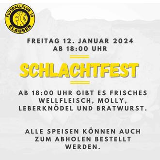 Der FK Clausen lädt herzlich zu unserem traditionellen Schlachtfest am Freitag, 12. Januar 2024, ab 18:00 Uhr ein!