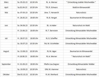 Im Rahmen von ca. 3-stündigen Waldspaziergängen (leichtes Gelände) möchten die Mitarbeiter des Forstamtes Hinterweidenthal mit interessierten Bürgern und Touristen ins Gespräch über ihre Arbeit in und mit dem Ökosystem "Wald" kommen. Dabei soll jeweils im gemeinsamen Austausch die Strategie der Bewirtschaftung unseres Waldes in seiner Komplexität betrachtet und erläutert werden. Treffpunkt an den veröffentlichten Terminen ist der Parkplatz am Tennisclub in Hinterweidenthal. Hier die Liste mit den Terminen: